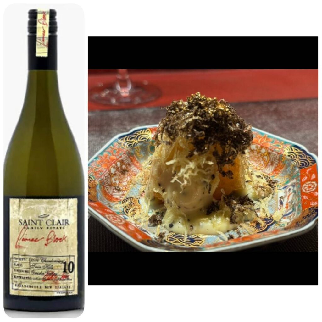 この料理のキーワードとなる「柔らかな酸」「クリーミー」「甘味」「トリュフ」ここから導き出されるワインとしてやはり、ウッディな印象を感じるふくよかなシャルドネがまず挙げられるでしょう。